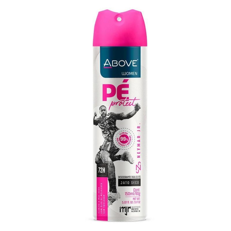 Para que você não sofra com mau cheiro da transpiração dos pés após um dia todo com calçado fechado, o indicado é usar o desodorante para os pés Pé Protect da Above Women. com 150ml/90g de volume, ele elimina 99% dos fungos e bactérias, possui óleo de melaleuca, jato seco e ainda, é vegano e não é testado em animais.