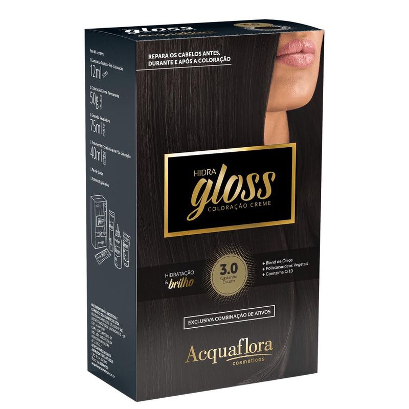 Acquaflora Hidra Gloss 3.0 Castanho Escuro Coloração Permanente 177g