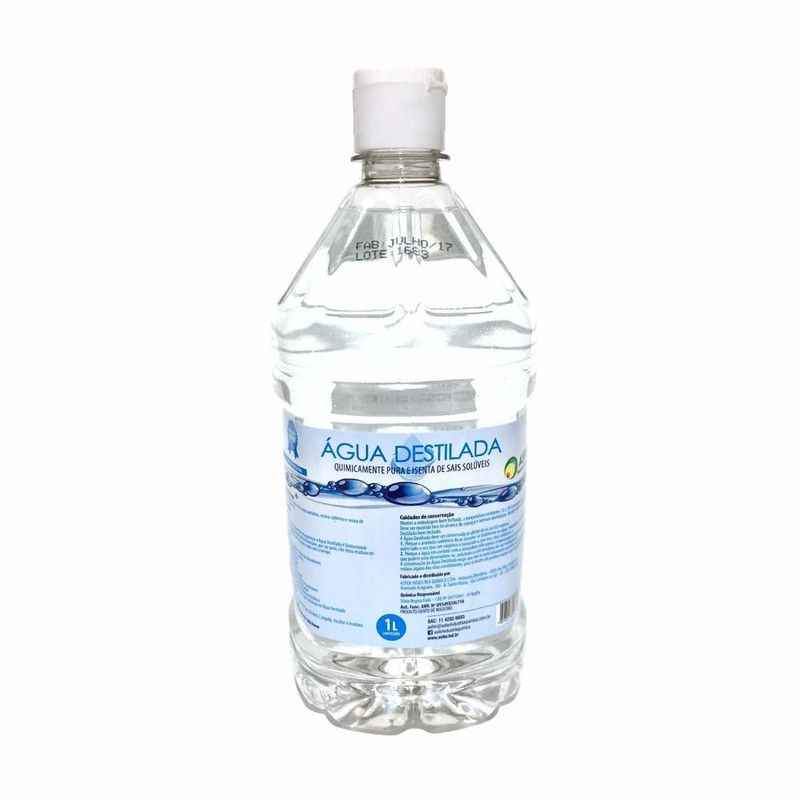 A água destilada é um tipo de água purificada que passou por um processo de destilação, no qual ela é aquecida a altas temperaturas e depois condensada novamente em forma líquida. Esse processo remove impurezas e minerais da água, tornando-a extremamente pura. Ao contrário da maioria das outras fontes de água potável, a água destilada não contém traços de metais ou sais minerais. A pureza da água destilada a também faz dela uma escolha popular para uso industrial e em laboratórios, onde o controle preciso sobre as propriedades químicas da água é fundamental. Uma grande vantagem da água destilada é sua eficácia no processo de limpeza. Águas duras contêm minerais que deixam manchas nas superfícies após secarem. Principais Usos: Uso em autoclaves, para esterilização de instrumentais, água destilada é fundamental para prolongar o tempo de vida útil da autoclave, por ser pura não deixa resíduos no separador de detritos e não escurece a cuba com o tempo. Apropriada para uso em enxágue de vidrarias e instrumentos de laboratórios; Pode ser utilizada em análises químicas; Pode ser utilizada nas áreas produtivas que necessitem de água pura, isenta de sais solúveis; Diluição de reagentes e tampões de pH; Metalização; Galvanoplastia; Aquaríssimo; Revelação de filmes; Recarga de Cartuchos; Sistema de Arrefecimento; Baterias; Radiadores automotivos; Precauções: Não ingerir. Produto Não estéril e Não Injetável. Armazenar em local protegido da luz e do calor; Manter a embalagem fechada após o uso e em local limpo e seco, não retornar a sobra que foi retirada do frasco, isso pode contaminar o frasco todo. Resumo: A destilação é um método eficaz para purificar a água, pois muitas impurezas, como sais minerais, bactérias, vírus e outros contaminantes, têm pontos de ebulição mais altos do que a água. Portanto, quando a água é evaporada, essas impurezas são deixadas para trás, resultando em água destilada pura. É importante ressaltar que a água destilada não contém os minerais essenciais encontrados na água potável comum. Portanto, não é recomendado beber água destilada como principal fonte de hidratação.