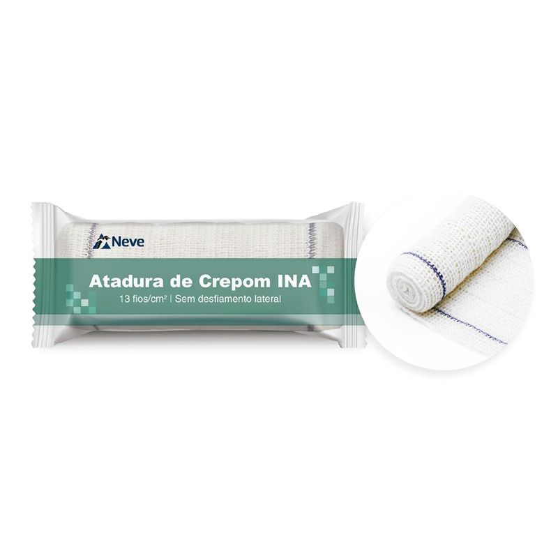 As Ataduras de Crepom INA são confeccionadas em tecido de alta qualidade, conferindo ao produto grande elasticidade no sentido longitudinal, sem desfiamento lateral e fios soltos. Indicação: Terapia compressiva, aplicações ortopédicas, como imobilizações e enfaixamentos, fixação de curativos e prevenção de contusões em atividades esportivas.