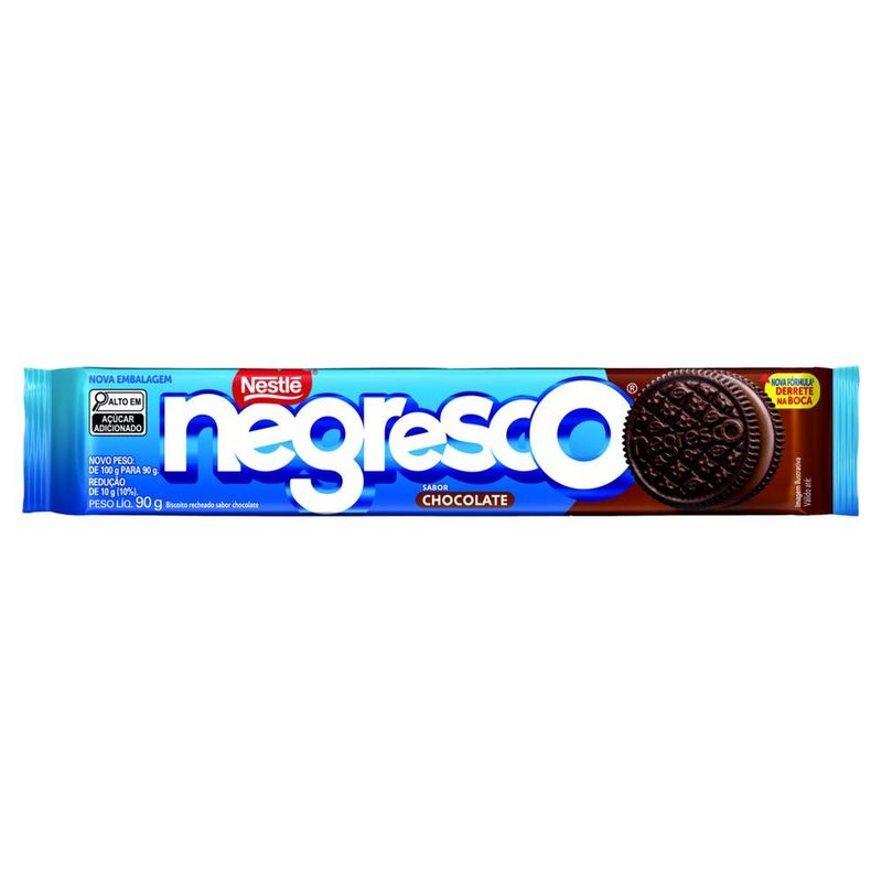 Biscoito Negresco Recheado com Chocolate, da marca Nestlé, em embalagem com 90 gramas. Com seu sabor intenso e característico do cacau, é perfeito para lanches rápidos, sobremesas ou simplesmente para satisfazer a vontade de saborear um biscoito. Feito com ingredientes de alta qualidade