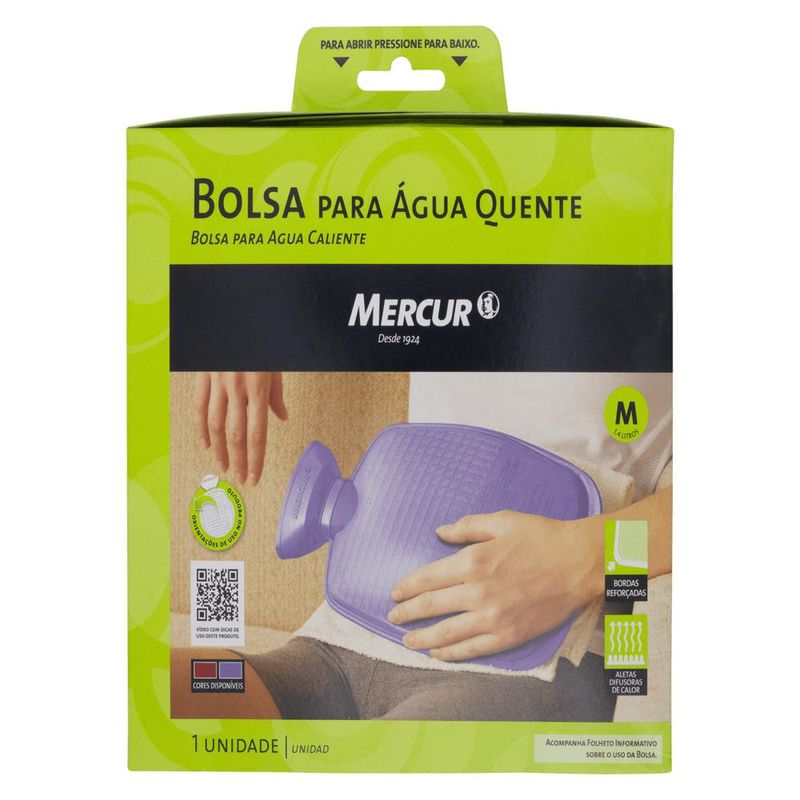 A Bolsa para Água Quente Mercur É Fabricada em Borracha, Possui Textura com Aletas (Ranhuras) Que Aumentam a Difusão do Calor, Proporcionando Temperatura Diferente em Cada Lado da Bolsa para Maior Segurança, as Bordas São Reforçadas e o Bocal É Grande e Firme, o Que Facilita a Colocação da Água Quente Disponível em 3 Tamanhos (P / M / G); Sua Aplicação de Calor, Terapia, Funciona Como Eficiente Analgésico Após 48H da Ocorrência de Traumas Ou Lesões.