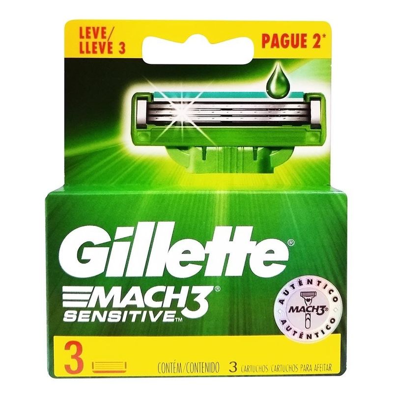 Carga De Aparelho Para Barbear Gillette Mach3 Sensitive Pague 2 Leve 3 Unidades