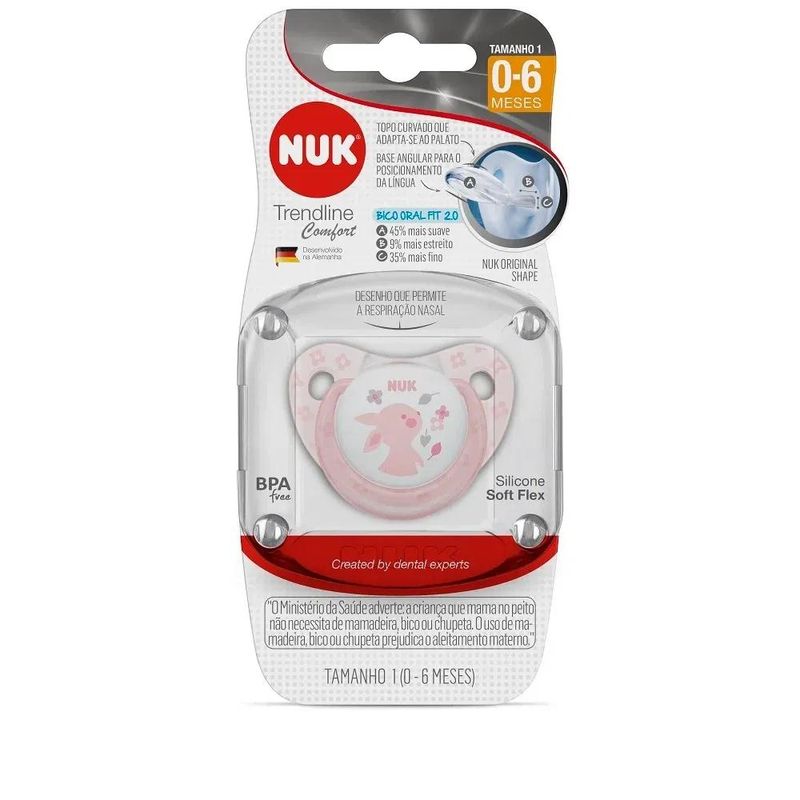 Chupeta Decorada Nuk Tamanho 1 Color Rose com 1 Unidade