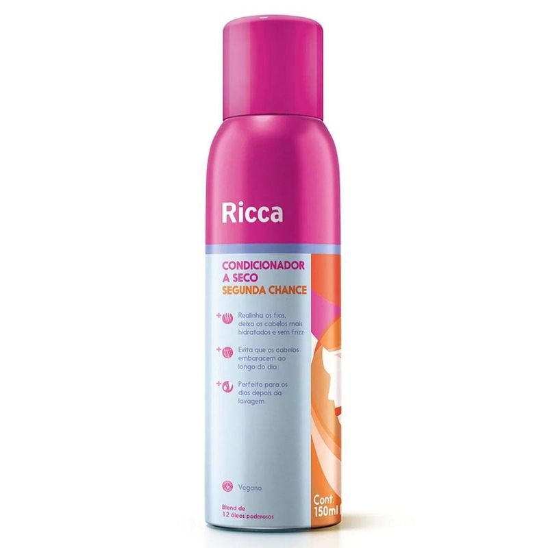 Condicionador a Seco Ricca Segunda Chance 150ml Uma segunda chance aos seus cabelos! Em poucos segundos, o Condicionador a Seco recupera o brilho e a maciez dos cabelos. Ele também evita que os fios embaracem, reduz o frizz e disfarça as pontas ressecadas.