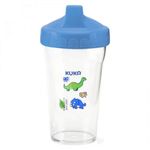 Copo kuka 250ml antivazamento azul. Bico antivazamento para evitar que o liquido que estiver em seu interior vaze de forma acidental, sistema de vedacao composto por uma valvula de silicone que se comprime com a succao feita no bico, liberando a passagem do liquido.