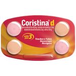 Indicações:Coristina D é indicada no tratamento dos sintomas do resfriado comum e da gripe (dor de cabeça, dor no corpo, febre, coriza, espirros e obstrução nasal). Coristina D é uma associação medicamentosa que combina a ação analgésica e antipirética do ácido acetilsalicílico, com a ação antialérgica do maleato de dexclorfeniramina, eficaz na coriza e espirros, com cloridrato de fenilefrina, eficaz no alívio da obstrução nasal e a ação revigorante da cafeína. A inclusão da cafeína tem por função compensar a sonolência que pode ocorrer com o componente anti-histamínico. O tempo estimado para o início da ação da Coristina D é de aproximadamente 30 minutos. Contraindicações:Não utilize Coristina D se você já teve qualquer alergia ou alguma reação incomum a qualquer um dos componentes da fórmula do produto ou se for portador de glaucoma de ângulo fechado, retenção urinária, pressão alta grave, doença cardíaca coronariana (angina ou infarto), hipertireoidismo (hiper função da glândula tireoide), hemofilia, úlcera no estômago ou no duodeno com hemorragia ou transtornos hemorrágicos. Coristina D não deverá ser usada concomitantemente com álcool, barbitúricos, antidepressivos tricíclicos ou outros depressores do sistema nervoso central. Coristina D não deve ser administrada em pacientes tratados com inibidores da monoaminoxidase ou nos 14 dias após a descontinuação desse tratamento. Coristina D é contraindicada em casos suspeitos ou confirmados de dengue. Este medicamento é contraindicado para menores de 12 anos. Reações Adversas:Azia, náuseas, vômitos, dor no estômago, zumbido, chiado no peito, úlcera no estômago, úlcera no duodeno, desconforto abdominal, perda de apetite, hemorragia gastrointestinal, hepatite, inflamação nos rins, alergia, manchas vermelhas na pele, coceira, urticária, tontura, convulsão, erupções na pele, reação alérgica grave, anemia, manchas roxas na pele e diminuição das contagens de plaquetas. Precauções:Coristina D deverá ser usado com cautela em pacientes com asma, úlcera no estômago ou no duodeno, obstrução do duodeno, aumento da próstata ou obstrução da bexiga, doença cardiovascular, glaucoma, diabetes mellitus ou anormalidades na coagulação. Os pacientes deverão ser alertados quanto a exercerem atividades que necessitem de estado de alerta mental, tais como dirigir automóveis e operar máquinas. Crianças ou adolescentes não devem usar esse medicamento para catapora ou sintomas gripais antes que um médico seja consultado sobre a síndrome de Reye, uma rara, mas grave doença associada a esse medicamento. Usar com cautela em pacientes que estejam tomando medicamentos anticoagulantes, ou nos que estejam recebendo tratamento para diabetes mellitus, gota ou artrite. Interromper o uso em caso de tontura, zumbidos nos ouvidos ou diminuição da audição. A segurança do uso de Coristina D durante a gestação ainda não foi determinada. A ingestão de ácido acetilsalicílico por parte da mãe tem sido associada a sérios efeitos adversos sobre o feto. Não se sabe se os componentes de Coristina D são excretados no leite humano, no entanto, sabe-se que os salicilatos são excretados. Portanto, deve-se ter cautela quando Coristina D for administrada em mulheres lactantes. Este produto contém o corante amarelo de TARTRAZINA que pode causar reações de natureza alérgica, entre as quais asma brônquica, especialmente em pessoas alérgicas ao ácido acetilsalicílico.