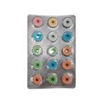Ingredientes: açúcar, glicose, acidulante ácido cítrico, aromas Artificiais de morango, maçã, laranja e uva, corantes artificiais Vermelho 40 (ins 129), amarelo crepúsculo (ins 110), amarelo Tartrazina (ins 102) e azul brilhante (ins 133). Não contém glúten.