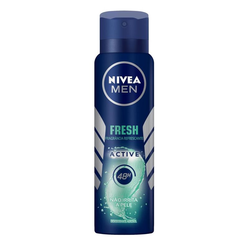 NIVEA MEN Desodorante Aerosol Fresh Active, 150 ml: O desodorante combina uma proteção eficaz de 48h, com cuidados delicados para a pele das axilas. Sua fórmula com fragrância refrescante proporciona uma sensação de frescor revitalizante e duradouro. A combinação perfeita entre proteção e cuidado NIVEA durante todo o dia. Sem alumínio, corantes e conservantes. Dermatologicamente testado.