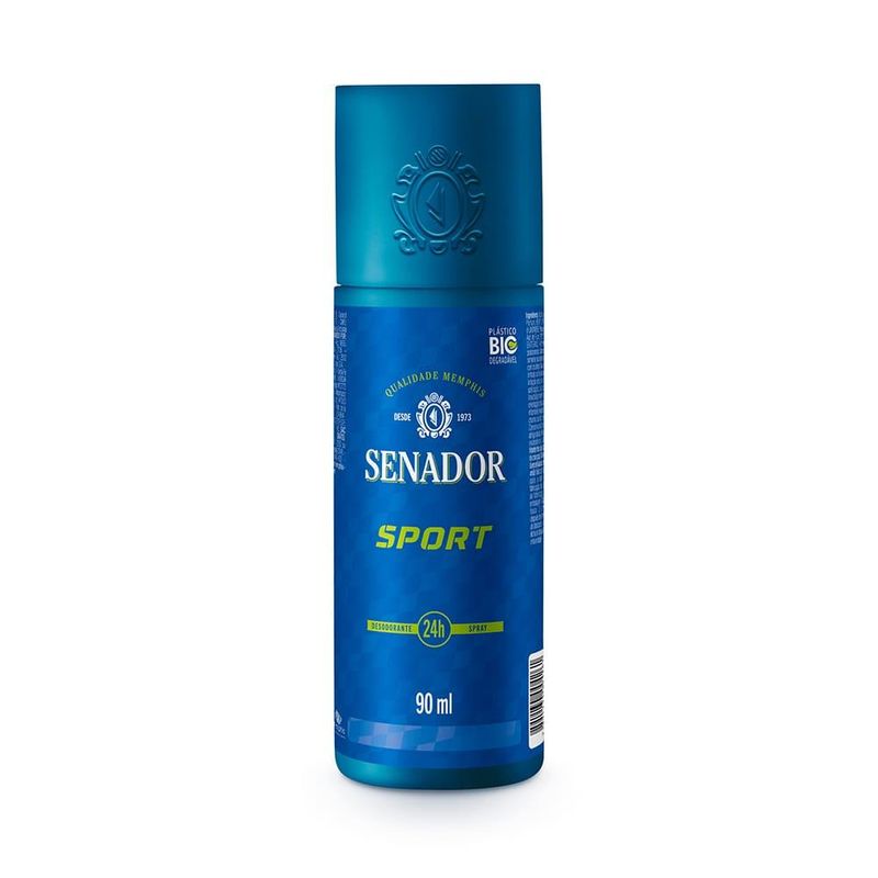 O Desodorante Spray Senador Sport 90ml possui uma fragrância única e uma sensação de refrescância e de banho tomado que acompanha durante o dia todo. A fórmula combina ainda agentes bactericidas e antitranspirantes que evitam e controlam os odores desagradáveis causados pela transpiração. Garante proteção eficaz por 24 horas.