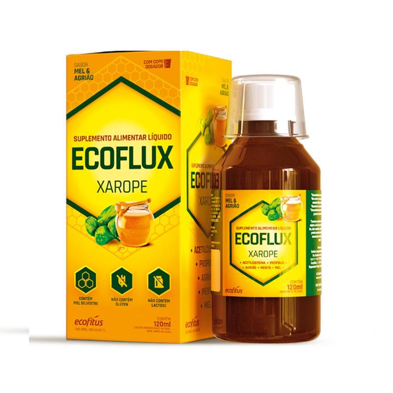 Xarope Ecoflux Mel amp; Agrião 120ml - Ecofituspara que serve ecoflux xarope? Ecoflux é um xarope líquido, à base de Acetilcisteína, Mel e Própolis, que auxiliam na manutenção e no bom funcionamento do organismo. como tomar ecoflux xarope? Tomar 10ml ao dia (medida do copo dosador), sob orientação do Médico ou Farmacêutico.Imagens Meramente Ilustrativas. Todas as Informações Divulgadas são de Responsabilidade Exclusiva do Fabricante/fornecedor.