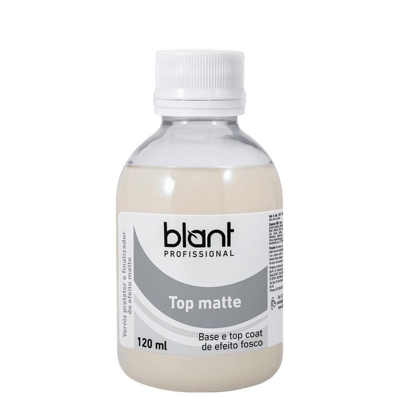 TOP MATTE Base profissional Indicado para: Preparação de cartelas de adesivos de unha, primer efinalizador fosco. O Top Matte é uma base de aspecto fosco e secagemrápida que pode ser utilizada em três processos deaplicações: •Preparação de cartelas e adesivos artesanais deunhas;•Antes da esmaltação como primer;•Finalizador para acabamento fosco. Características: •Secagem rápida;•Preenche as lacunas rugosas das unhas;•Garante maior fixação e durabilidade ao esmalte;•Ideal para Nail Art e para fabricação de adesivos artesanais de unha. Diferenciais: •Maior custo benefício, a embalagem rende até 14 vidrinhos de 8,5 ml;•Como finalizador prolonga a durabilidade do esmalte e evita lascar;•Efeito matte ideal para homens;•Livre de tolueno, formaldeído, DBP e cânfora;•Facilita a aplicação de esmaltes ralos e muito claros, pois não se mistura com a primeira camadatornando a esmaltação mais uniforme. Modo de usar: Como base: Aplique uma camada fina sobre as unhas limpas e secas,espere secar totalmente e então aplique o esmalte de sua preferênciae finalize com o Top Coat ou Extra Brilho. Como Finalizador: Após aplicar a segunda camada de esmalte, aguardeum instante, em seguida aplique o Top Matte em toda a superfícieda unha até a ponta, para um efeito fosco ou use a criatividade paracriação de Nail Art. Boas Compras ; )