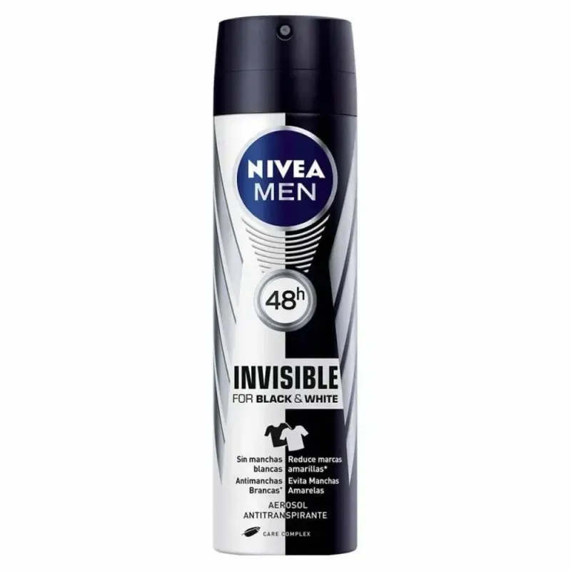 O Nivea Men Black&White Invisible é um desodorante antitranspirante aerossol com tecnologia que ajuda a prevenir manchas brancas e amareladas, causadas pela transpiração, em roupas brancas e amarelas.