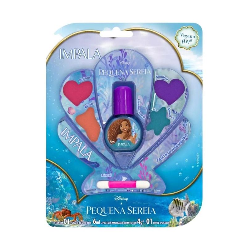 Está pronta para mergulhar em um mundo de beleza encantado? O Kit Esmalte e maquiagem A Pequena Sereia Disney Kids Impala traz a magia do fundo do mar direto para sua rotina de cuidados. Com cores vibrantes e produtos fofos, esse kit vai transformar a sua experiência de beleza em algo digno de conto de fadas! O que é: - Kit Esmalte e Maquiagem A Pequena Sereia Disney Kids. - Marca: Impala. - Linha: Princesas. O que tem: - Pincel Aplicador. - Paleta de Maquiagem infantil 4g. - Esmalte Infantil Impala Perolado A Pequena Sereia 6 ml. - Não testado em animais. - Vegano. - Hipoalergênico. - Sai com água e sabão. O que faz: - Proporciona unhas coloridas e radiantes. - Permite criar looks incríveis com as sombras e blushes da paleta, deixando sua maquiagem cheia de brilho e personalidade. - A fórmula vegana é suave, ideal para o uso infantil. Indicado para: - É uma excelente forma de permitir que as crianças se divirtam de forma criativa e sem riscos. - Pode ser uma ótima opção para festas, fantasias ou eventos temáticos. - Para crianças a partir de 5 anos. Modo de uso: - Aplique o esmalte nas unhas limpas e secas. - Aplicando uma ou duas camadas conforme desejado. - Deixe secar. - Sai com água e sabão. - Aplique as sombras com os dedos ou pincéis, criando o visual mais encantado que desejar. Precauções de uso: - Não usar em crianças menores de 5 anos. - Deve ser aplicado exclusivamente por adulto. - Caso o produto entre em contato com os olhos, lavar com água corrente em abundância. Mergulhe nessa aventura encantada! Adquira o Kit Esmalte e Maquiagem A Pequena Sereia Disney Kids Impala e transforme seu visual com muito brilho e diversão.