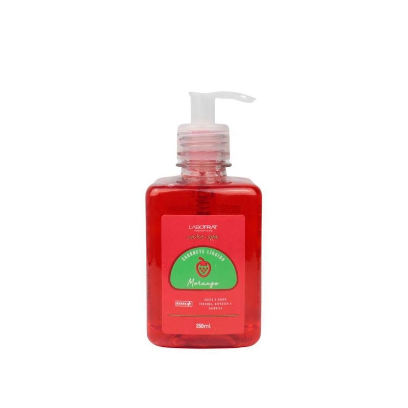 Sabonete Líquido Morango Labotrat - 350ml - Benefícios: Além de muito perfumado, é rico em antioxidantes, vitamina A, C e E, que são muito importantes para combater os radiais livres e prevenir o envelhecimento preococe da pele. Banho que promove beleza e