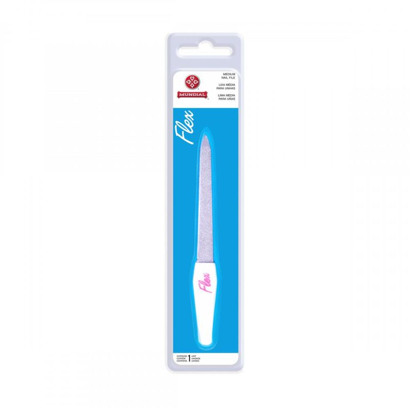 Ideal para reduzir e dar forma às unhas, lixa média Flex da Mundial possui ponta fina que facilita a limpeza debaixo das unhas e tamanho médio que cabe em qualquer lugar.