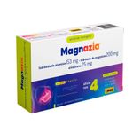 Magnazia é uma formulação com propriedades antiácidas e antiflatulentas, pois contém hidróxido de alumínio, hidróxido de magnésio e simeticona. O hidróxido de alumínio e o hidróxido de magnésio neutralizam a acidez gástrica (do estômago) e a simeticona, um polímero de sílica, é importante no tratamento da aerofagia (ingestão de ar), promovendo a eliminação dos gases excessivos acumulados no trato gastrointestinal (trato digestivo), que contribuem para o aumento da acidez local.