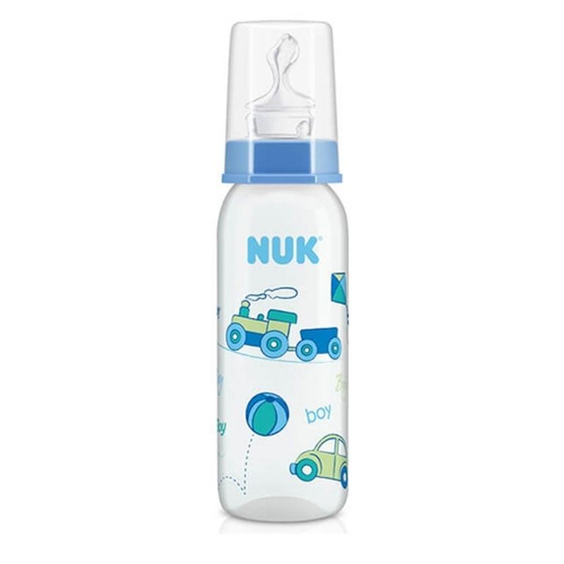 As mamadeiras NUK possuem o formato de bico ortodôntico, pesquisado e desenvolvido na Alemanha por especialistas, visando ao saudável desenvolvimento oral. Auxílio à digestão: O furo no bico NUK está localizado atrás da curva, e não na ponta do bico, fazendo com que o alimento seja direcionado para o palato da criança, misturando-se com a saliva antes de ser engolido Conforto: A superfície age como suporte para o lábio superior durante a ação da sucção NUK AIR SYSTEM: Sistema de saída de ar que compensa a diferença de pressão na mamadeira e auxilia na redução da ingestão de ar durante a alimentação Anatômico: A curva do bico adapta-se ao palato Design: Parte plana para o correto posicionamento da língua Sucção correta: O suporte plano para o lábio permite uma ação de sucção apertada e reduz a entrada de ar durante a alimentação Posicionamento ideal: A inclinação força a criança a desenvolver a ação da sucção com a mandíbula inferior Compatível com os bicos da Linha Classic. Atenção: mantenha o disco de vedação fora do alcance de crianças. O bico ortodôntico deve ser utilizado com o furo posicionado para cima. Não utilizar o micro-ondas para aquecimento dos alimentos. O aquecimento irregular do líquido pode ocasionar queimaduras. Não aquecer ou resfriar a mamadeira vedada. Produto certificado pelo INMETRO - NBR 13793 "O MINISTÉRIO DA SAÚDE ADVERTE: A CRIANÇA QUE MAMA NO PEITO NÃO NECESSITA DE MAMADEIRA, BICO OU CHUPETA. O USO DE MAMADEIRA, BICO OU CHUPETA PREJUDICA A AMAMENTAÇÃO E SEU USO PROLONGADO, PREJUDICA A DENTIÇÃO E A FALA DA CRIANÇA."