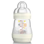 A MAM desenvolveu e patenteou um bico simétrico de silicone ultramacio. Comprovadamente aceita por 94% das crianças. Menos cólicas e regurgitação graças à base ventilada que proporciona um fluxo regular sem interrupção. Menos cólica confirmado por 80% das mães. Totalmente desmontável facilitando a limpeza. Autoesterilizável em 3 minutos