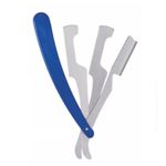 Navalhete para cabeleireiro em aço inox e cabo em poliamida de alta resistência química, com a parte de metal em inox liso e duas faces para melhor prender a lâmina de barbear.