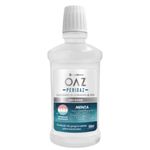 OAZ Perioaz Antisséptico Bucal Gengivas Saudáveis Menta 500ml Eurofarma PeriOAZ é um enxaguante bucal testado e aprovado odontologicamente. Sua fórmula contém gluconato de clorexidina (concentração de 0,12%), que possui poderosa ação antibacteriana e capaz de combater a gengivite, prevenir placas bacterianas e sangramento gengival. PeriOAZ, para um sorriso mais saudável e refrescante. Recomendação de Uso Encha a tampa com o enxaguatório bucal até a marca interna (15mL) e bocheche durante aproximadamente 30 segundos. | Elimine o produto em seguida. Usar o enxaguatório pela manhã e à noite após escovação e uso do fio dental. Produto recomendado após profilaxia em consultório. Não diluir, não comer ou beber | nos próximos 30 minutos após o uso Composição Gluconato de Clorexidina Apresentação Enxaguante bucal 250ml ou 500ml Alertas Usar sob orientação do dentista. Manter fora do alcance das crianças. Não é indicado para crianças. Não ingerir. Este produto não pode ser usado por pessoas que tenham alergia ao componente gluconato de clorexidina. Mulheres grávidas e lactantes somente com indicação do médico ou dentista. Com o uso prolongado do produto pode ocorrer manchamento extrinseco dos dentes, o qual pode ser removido em consultório odontológico. Pode ainda ocorrer manchamento da língua, ardência bucal e alterações no paladar, sendo em todos os casos um processo reversivel com a interrupção do uso. Armazenar o produto em local fresco, arejado, ao abrigo da luz e calor.