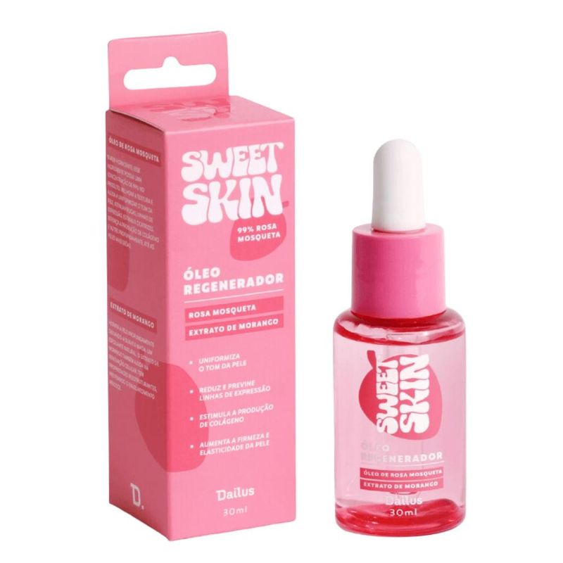 Óleo Regenerador Sweet Skin Dailus 30ml O Óleo Regenerador de Sweet Skin finaliza a rotina de cuidados em grande estilo! Com poder hidratante e cicatrizante, este produto multifuncional pode ser usado no rosto, estrias, virilhas e axilas.