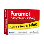 Paramol reduz a febre atuando no centro regulador da temperatura no Sistema Nervoso Central (SNC) e diminui a sensibilidade para a dor. Seu efeito tem início 15 a 30 minutos após a administração oral e permanece por um período de 4 a 6 horas. Duração do tratamento Depende do desaparecimento dos sintomas. Solução gotas Uso oral. O paracetamol pode ser administrado independentemente das refeições. Retire a tampo do frasco. Incline o frasco à 90º (posição vertical), conforme a ilustração abaixo. Goteje a quantidade recomendada e feche o frasco após o uso. Não administrar este medicamento diretamente na boca do paciente. Crianças abaixo de 12 anos 1 gota/kg até a dosagem máxima de 35 gotas. A dose recomendada de paracetamol varia de 10 a 15 mg/kg/dose, com intervalos de 4 a 6 horas entre cada administração. Não exceda 5 administrações (aproximadamente 50- 75mg/kg), em um período de 24 horas. Para crianças abaixo de 11 kg ou 2 anos, consultar o médico antes do uso. Adultos e crianças acima de 12 anos 35 a 55 gotas, 3 a 5 vezes ao dia. A dose diária máxima de paracetamol é de 4000 mg (275 gotas) administrados em doses fracionadas, não excedendo a dose de 1000 mg/dose (55 gotas) com intervalos de 4 a 6 horas, no período de 24 horas. Comprimido Uso oral. Você deve tomar os comprimidos com líquido. O paracetamol pode ser administrado independentemente das refeições. Adultos e crianças acima de 12 anos 1 comprimido, 3 a 5 vezes ao dia. A dose diária máxima recomendada de paracetamol é de 4000 mg (5 comprimidos de Paramol 750 mg) administrada em doses fracionadas, não excedendo 100 0mg/dose (1 comprimido de Paramol 750mg), em intervalos de 4 a 6 horas, em um período de 24 horas. Este medicamento não pode ser partido, aberto ou mastigado. Siga corretamente o modo de usar. Em caso de dúvidas sobre este medicamento, procure orientação do farmacêutico. Não desaparecendo os sintomas, procure orientação médica ou de seu cirurgião-dentista. Cada mL (15 gotas) contém: Paracetamol 200mg Veículo q.s.p. 1mL Veículo: ciclamato de sódio, sacarina sódica, polietilenoglicol 400, metabissulfito de sódio, álcool etílico, metilparabeno, propilparabeno, corante amarelo crepúsculo, aroma de framboesa, água purificada. Cada 1 mL de Paramol gotas (15 gotas) contém 200 mg de paracetamol (13,3mg/gota). Cada comprimido contém: Paracetamol 750,00mg Excipiente q.s.p 1 comprimido Excipientes: estearato de magnésio e dióxido de silício. Paramol deve ser mantido em sua embalagem original, em temperatura ambiente (entre 15 e 30°C), protegido da luz. Número de lote e datas de fabricação e validade: vide embalagem. Não use o medicamento com o prazo de validade vencido. Guarde-o em sua embalagem original. Características do medicamento Solução gotas Solução límpida de cor amarela a alaranjada, odor característico de framboesa. Comprimido Comprimido oblongo, liso e branco. Antes de usar, observe o aspecto do medicamento. Caso ele esteja no prazo de validade e você observe alguma mudança no aspecto, consulte o farmacêutico para saber se poderá utilizá-lo. Todo medicamento deve ser mantido fora do alcance das crianças. Solução gotas Solução oral em frasco com 15mL, contendo 200 mg/mL de paracetamol. Embalagens hospitalares com 25 ou 50 frascos plástico com 15 mL, contendo 200 mg/mL de paracetamol. Uso oral. Uso adulto e pediátrico Comprimido Embalagens com 12, 20, 24 ou 200 comprimidos contendo 750 mg de paracetamol. Embalagens hospitalares com 240, 480 e 600 comprimidos contendo 750 mg de paracetamol. Uso oral. Uso adulto e pediátrico acima de 12 anos.