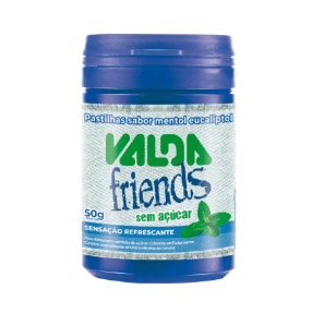 Valda friends é uma pastilha altamente refrescante por possui em sua composição uma ação de extensão prolongada do frescor, a base de mentol e eucaliptol e, mais, é zero açúcar. Altamente refrescante .