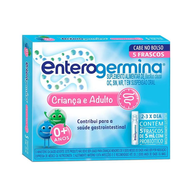 O que é e para que serve o Probiótico Enterogermina Criança e Adulto? Enterogermina é um probiótico líquido pronto para beber, indicado para pessoas com desconforto intestinal. Cada flaconete contém cerca de 2 bilhões de esporos de Bacillus clausii, microrganismos benéficos que ajudam a equilibrar a flora intestinal, melhorar a digestão e fortalecer o sistema imunológico. O consumo deve estar associado a uma alimentação equilibrada e hábitos saudáveis. Como usar o Enterogermina Criança e Adulto? Passo 1: Destaque um flaconete da embalagem.Passo 2: Agite antes de usar e gire a tampa para abrir.Passo 3: Leve até a boca e pressione o flaconete para que o líquido saia por completo.Importante: Após abrir o frasco, consumir imediatamente. Advertências Uso exclusivo oral. Não inalar ou injetar. Não consumir se for imunocomprometido. A presença de grânulos no flaconete não indica alteração do produto. Manter em sua embalagem original, em temperatura ambiente (15º a 30ºC), ao abrigo de luz e umidade. Mantenha fora do alcance de crianças.