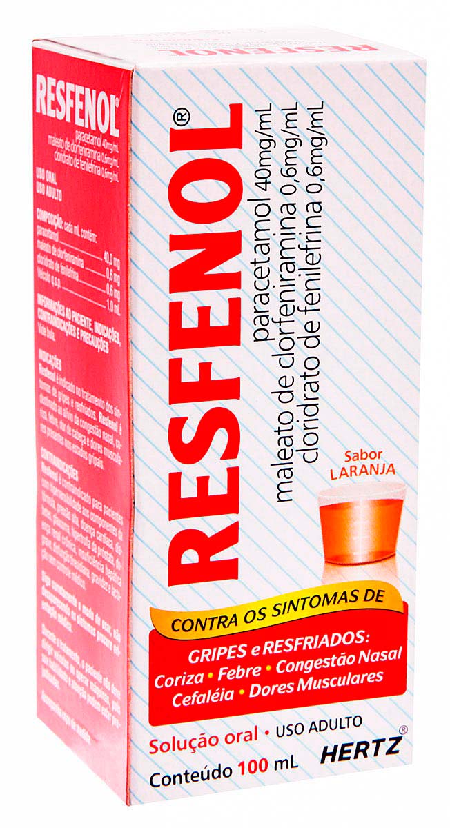 (40mg,mL Paracetamol + 0,6mg,mL Maleato de Clorfeniramina + 0,6mg,mL Cloridrato de Fenilefrina) RESFENOL é indicado no tratamento dos sintomas de gripes e resfriados.