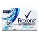 Rexona Antibacterial Limpeza Profunda elimina 99,9% das bactérias*, de acordo com testes realizados em laboratório (*Bactérias Testadas: P. aeruginosa, S. epidermidis e C. xerosis. Proporciona uma sensação prolongada de refrescância e limpeza profunda. Com uma combinação exclusiva de ingredientes que, em conjunto, entregam benefícios de limpeza e refrescância. Apresenta um pH adequado à sua pele, promovendo uma limpeza eficaz sem ressecar ou remover a camada protetora da sua pele. Possui uma fragrância que mistura notas frutais com aromas revigorantes de jasmin e botões de rosa. Os sabonetes Rexona são dermatologicamente testados. O sabonete em barra Rexona Antibacterial possui uma formulação única, que promove uma limpeza profunda e elimina 99,9% das bactérias*, de acordo com testes realizados em laboratório (*Bactérias Testadas: P. aeruginosa, S. epidermidis e C. xerosis). Sua tecnologia desodorante apresenta uma combinação exclusiva de ingredientes que, em conjunto, entregam benefícios de limpeza e refrescância. Essa tecnologia age nos princípios de desodorização, trazendo perfumação e uma sensação de refrescância. O Rexona Antibacterial possui uma fragrância que mistura notas frutais com aromas revigorantes de jasmin e botões de rosa, proporcionando uma sensação prolongada de refrescância e limpeza profunda. Além disso, a linha de sabonetes de Rexona, apresenta um pH adequado à sua pele, promovendo uma limpeza eficaz sem ressecar ou remover a camada protetora da sua pele. Para uma melhor experiência de uso e rendimento do produto, sugerimos as seguintes formas de uso: Apenas um pouco do produto na esponja é capaz de lavar o corpo inteiro; Banho com esponja: aplique uma pequena quantidade de produto na esponja (5ml) e passe suavemente pelo corpo; Banho sem esponja: Aplicar uma pequena quantidade de produto nas mãos, fora da água, fazer a espuma e aplicar no corpo; Os sabonetes Rexona oferecem uma refrescância inigualável para o seu banho. Todos os sabonetes da linha de Rexona são dermatologicamente testados.