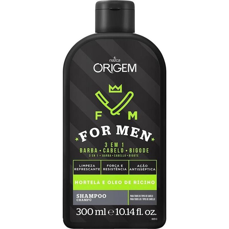 Origem for Men é uma linha desenvolvida especialmente para você, Homem moderno, Conservador, Esportista e Descolado. Não importa o seu estilo, nós te acompanhamos. Origem for Men Shampoo 3 em 1 limpa os seus cabelos, barba e bigode de forma refrescante e ao mesmo tempo hidratante, diminuindo a coceira, quando houver. Possui ação antisséptica para a sua barba e bigode. Fórmula enriquecida com Extrato de Hortelã e Óleo de Rícino.