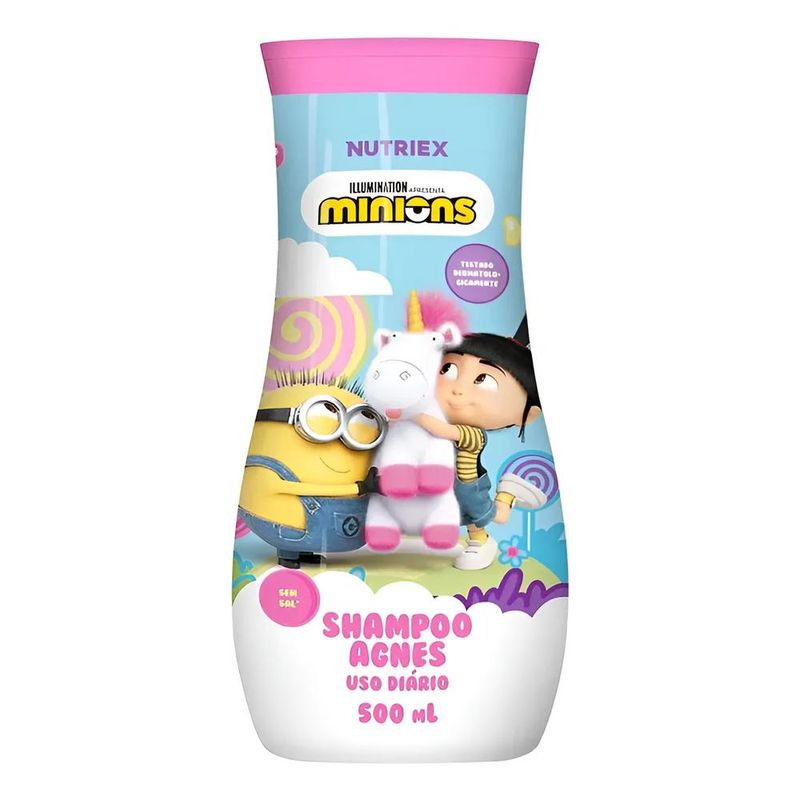 O Shampoo Minions - Agnes é formulado com ativo multifuncional e extrato de blueberry que promove limpeza suave e hidratação dos fios, deixando os cabelos super macios, brilhantes e delicadamente perfumados, além de lisos incríveis, alinhamento perfeito e sem frizz. Dermatologicamente testado, é seguro para uso diário.
